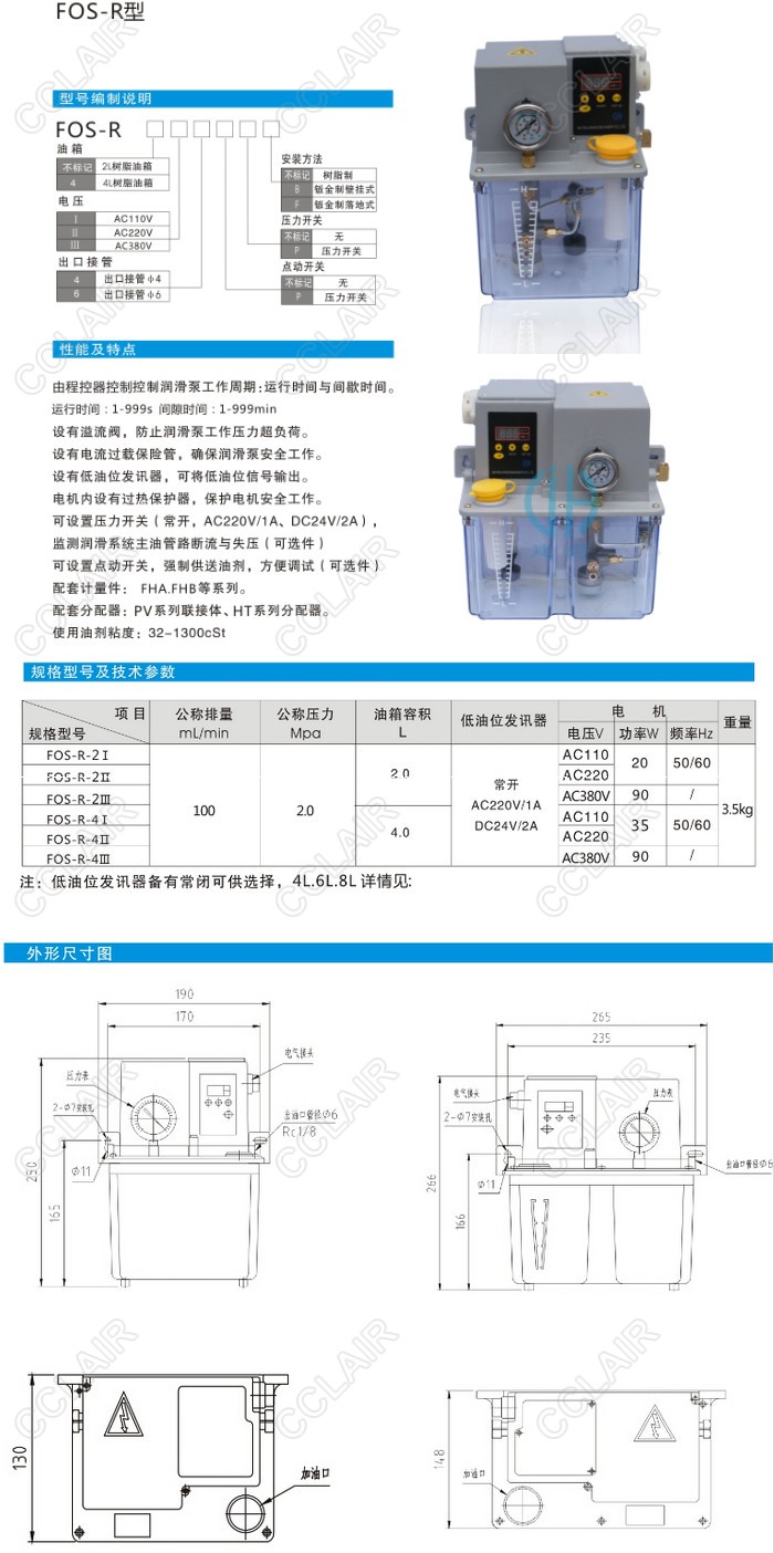 FOS-R-2I,FOS-R-2II,FOS-R-2III,FOS-R-4I,FOS-R-4II,FOS-R-4III,電動(dòng)間歇式稀油潤滑泵