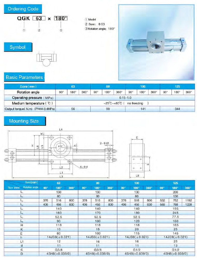 QGK63X90,QGK63X180,QGK80X180,QGK80X360,QGK100X360,QGK125X90,Shinya齒輪齒條擺動(dòng)油缸