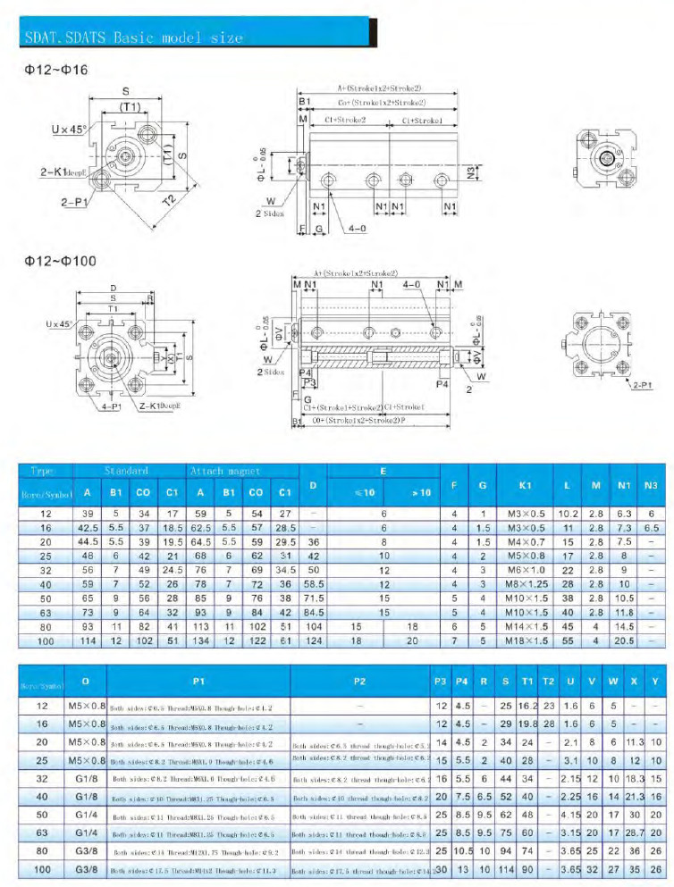 SDAT-12,SDAT-16,SDAT-20,SDAT-25,SDAT-32,SDATS-40,SDATS-50,SDATS-63,SDATS-80,Shinya緊湊型氣動缸