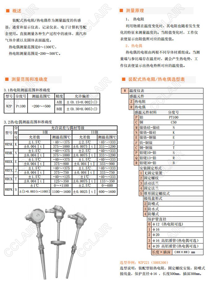 WZP120,WZP330,WZC543,WZC544,WZP221(500X300),裝配型熱電阻,熱電偶