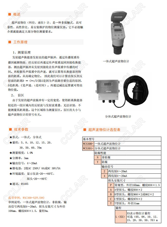 型號: WCS300-N2PL(05),WSC300-N2PL(08),WCS301-Y4TL(70),超聲波物位計