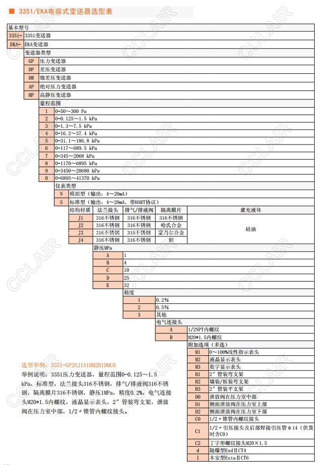 3351-GP1NJ1,3351-GP2SJ1A1BM2B1D0C0,3351,EKA小型化壓力,差壓變送器