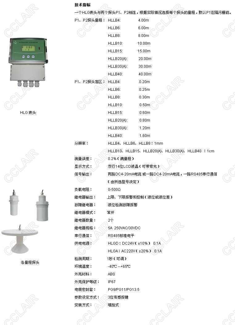 HLLB4,HLLB6,HLLB8,HLLB10,HLLB15,HLLB20(A),HLLB30(A),HLG型超聲波液位差計(jì)