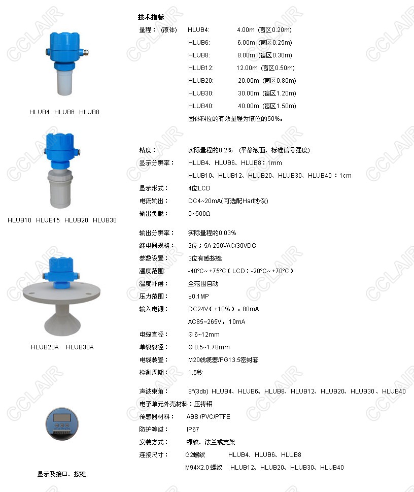 HLUB4,HLUB6,HLUB8,HLUB12,HLUB20,HLUB30,HLUB40,HLUB一體式超聲波物位計(jì)