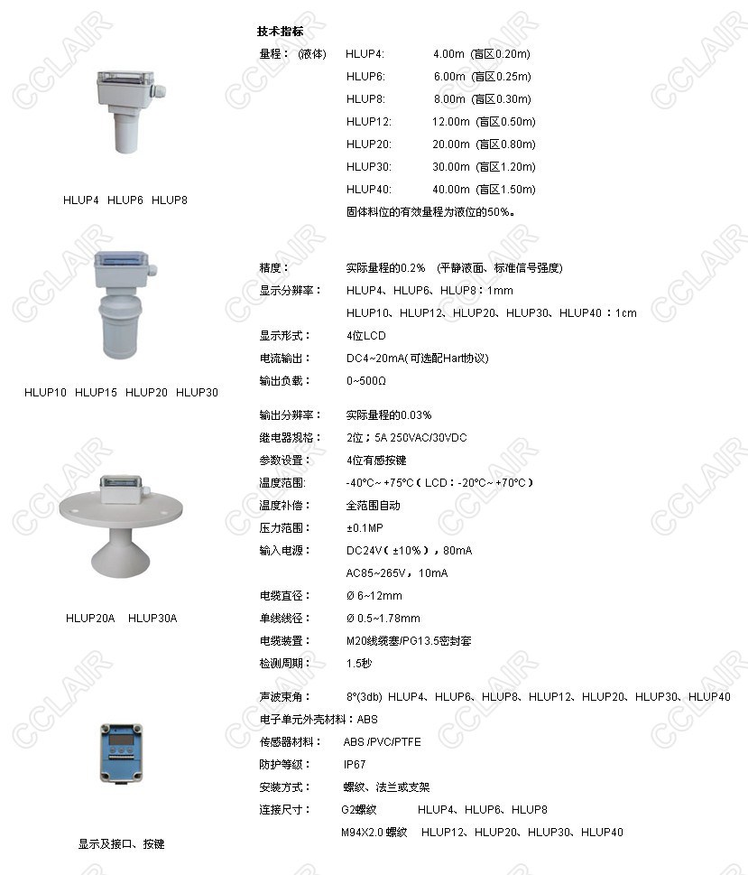HLUP4,HLUP6,HLUP8,HLUP12,HLUP20,HLUP30,HLUP40,HLUP一體式超聲波物位計
