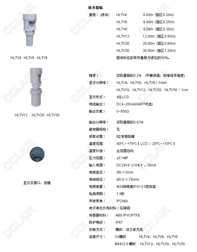 HLTV4,HLTV6,HLTV8,HLTV12,HLTV20,HLTV30,HLTV一體式超聲波物位計(jì)