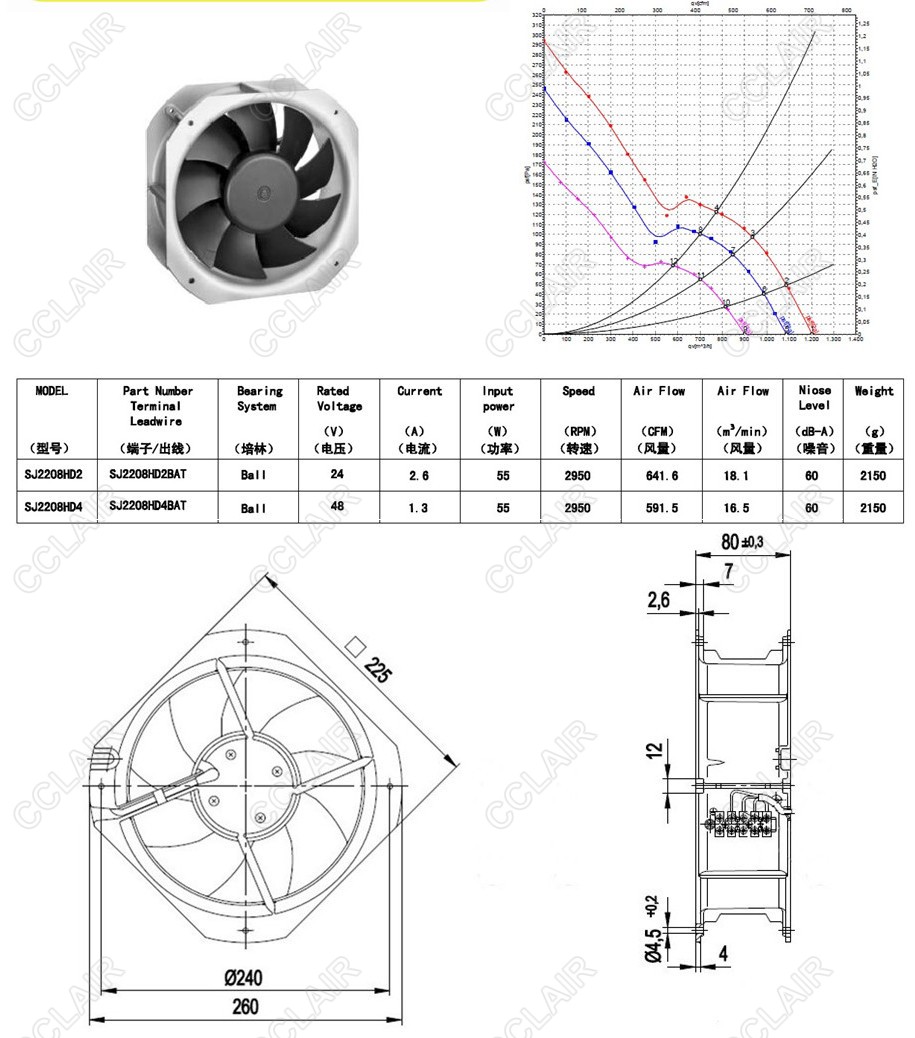 SJ2208HD2,SJ2208HD4,SJ2208,SANJI DC鐵葉風機