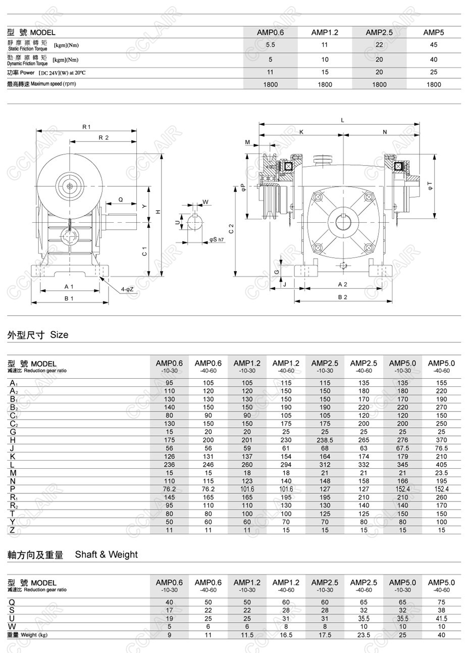 AMP0.6,AMP1.2,AMP2.5,AMP5,STEKI AMP型電磁式離合制動器組合