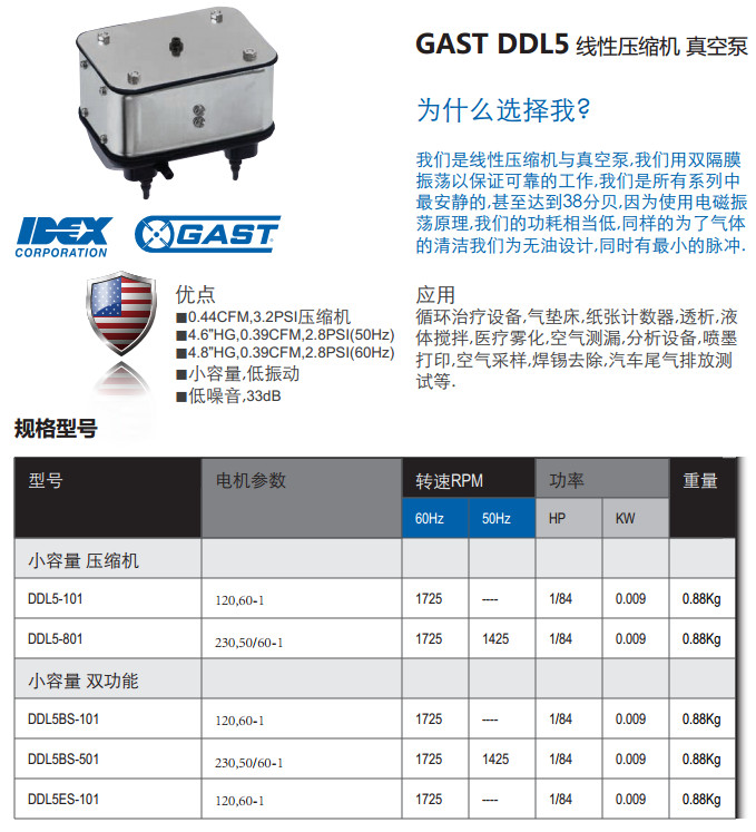 DDL5-101,DDL5-801,DDL5BS-101,DDL5BS-501,DDL5ES-101,線性壓縮機/真空泵