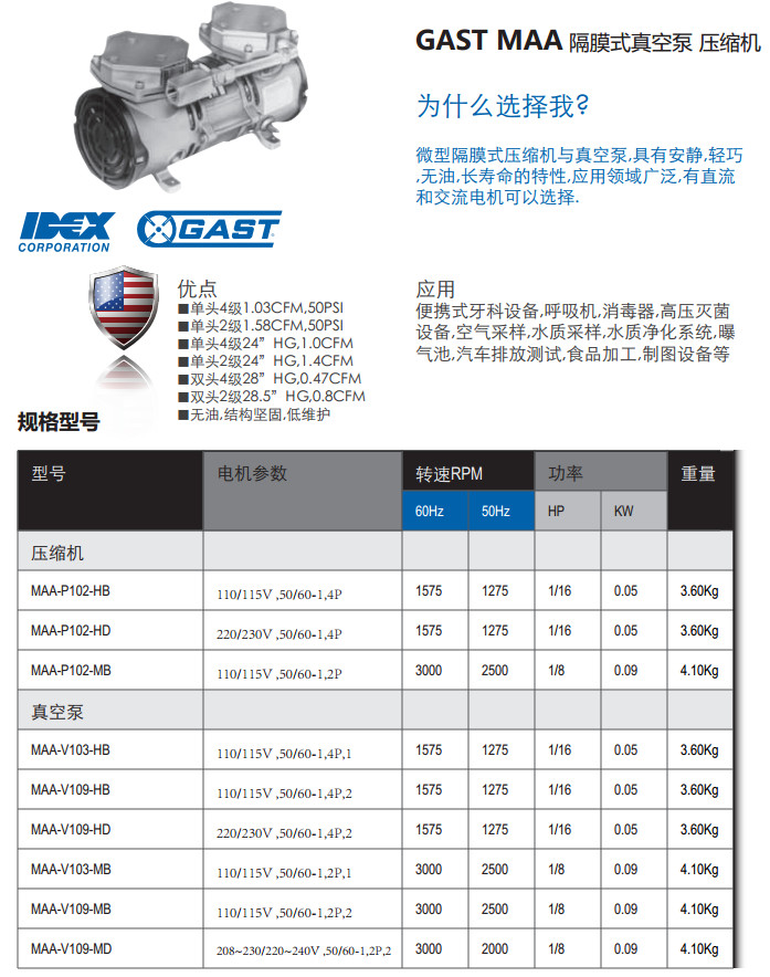 MAA-P102-HB,MAA-P102-HD,MAA-P102-MB,MAA-V103-HB,MAA-V109-HB,隔膜式真空泵/壓縮機(jī)
