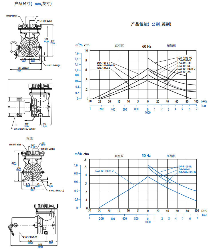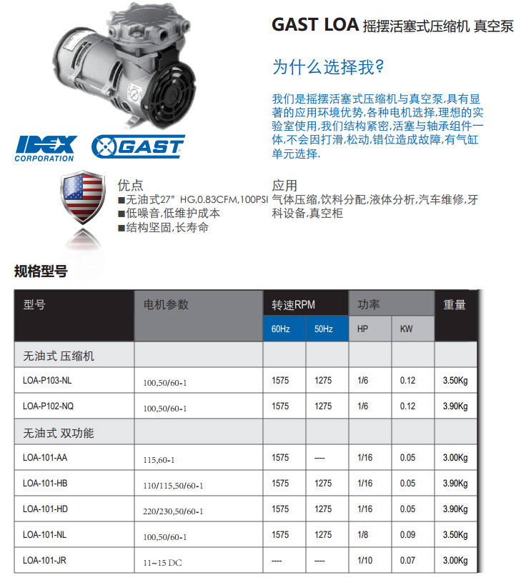 LOA-P103-NL,LOA-P102-NQ,LOA-101-AA,LOA-101-HB,LOA-101-HD,搖擺活塞式壓縮機(jī)/真空泵 |