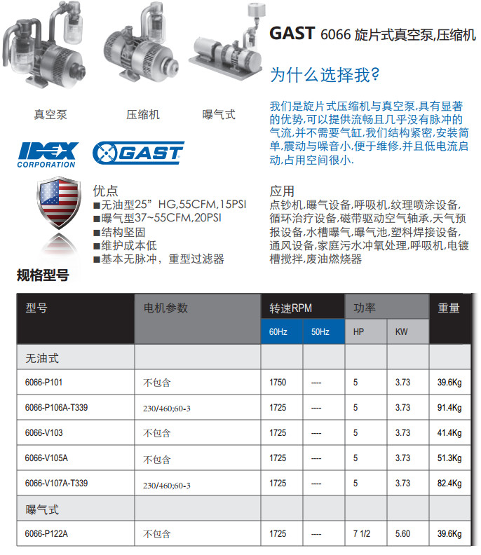 6066-P101,6066-P106A-T339,6066-V103,6066-V105A,6066-V107A-T339,旋片式真空泵/壓縮機 |