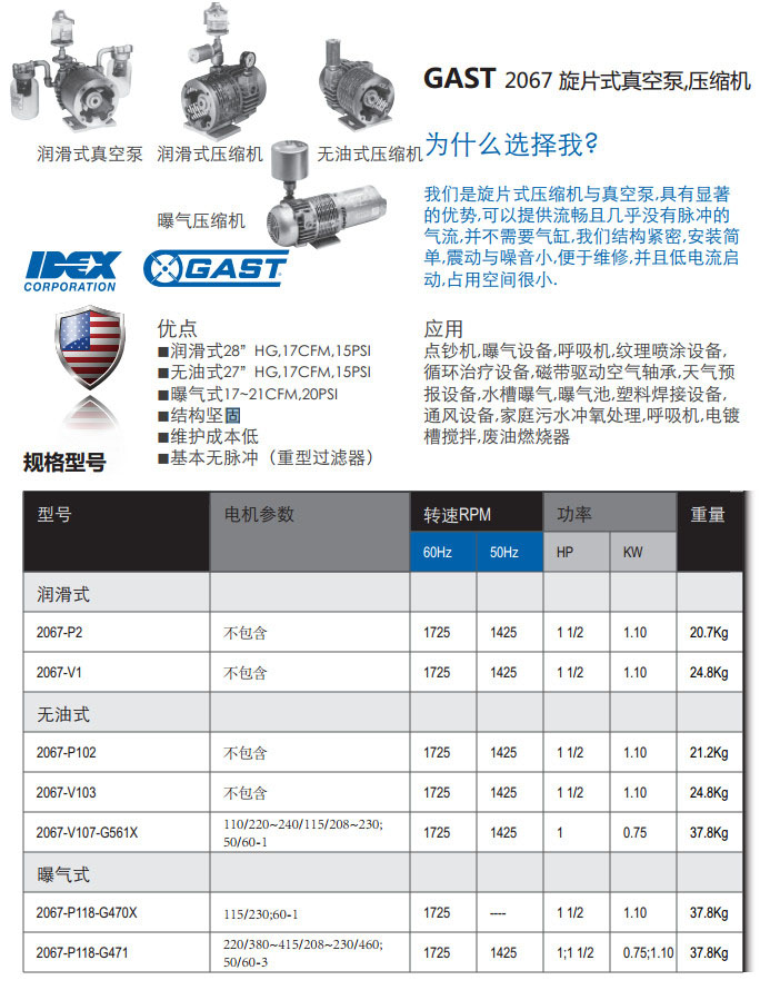 2067-P2,2067-V1,2067-P102,2067-V1032067-V107-G561X,旋片式真空泵/壓縮機(jī)