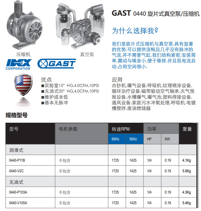 0440-P11B,0440-V2C,0440-P103A,0440-V105A,旋片式真空泵/壓縮機(jī)