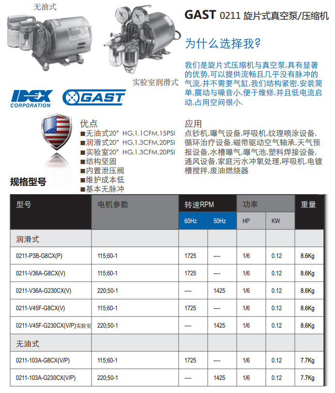 0211-P3B-G8CX,0211-V36A-G8CX,0211-V36A-G230CX,0211-V45F-G8CX,旋片式真空泵/壓縮機(jī)