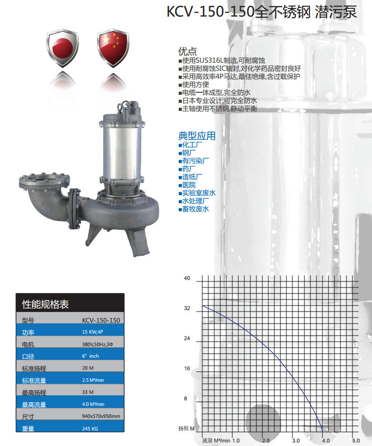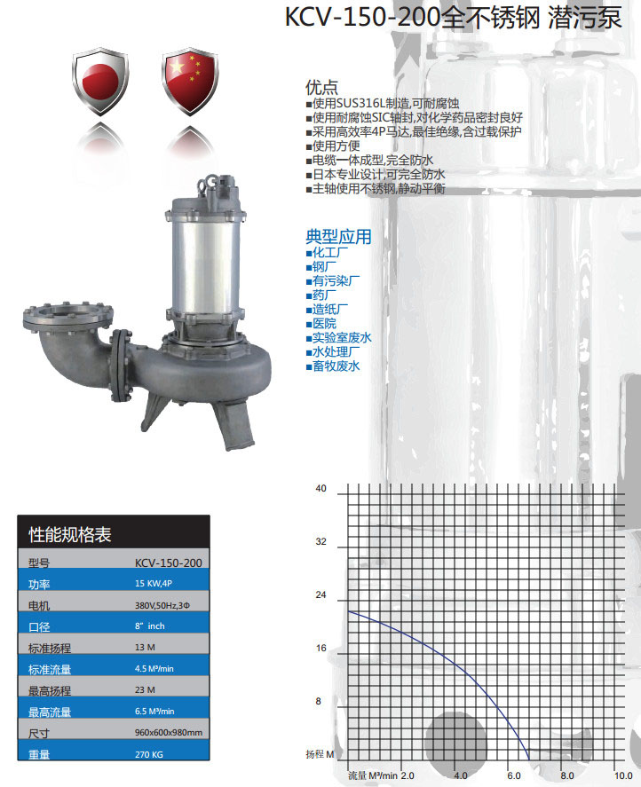 KCV-150-150,KCV-150-200,全不銹鋼潛污泵