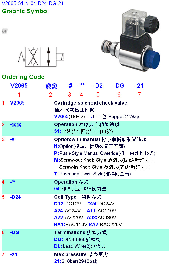V2065-51-N-04-D24-DG-21,V2065-51-P-04-D24,V2065-51-M-04-D24,V2065-51-T-04-D24,HYDROMAX插入式電磁止回閥