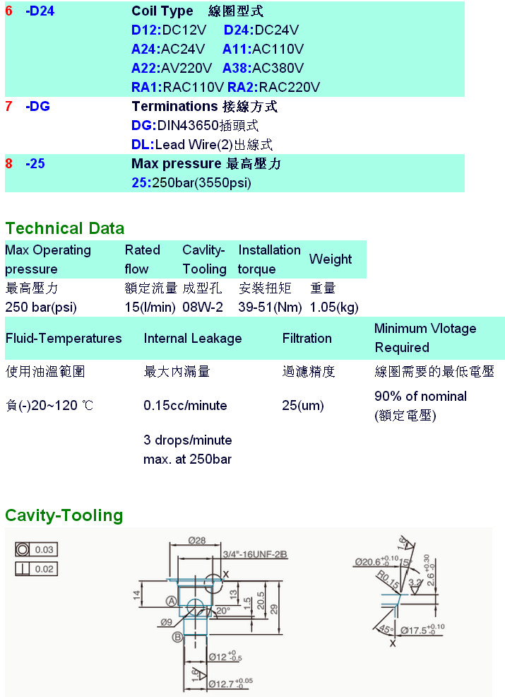 V2074-T03-21,V2074-T03-22,V2074-T03-23,V2074-T03-24,V2074-T03-20-S-N-D24-DG-25,HYDROMAX插入式電磁升降閥 |
