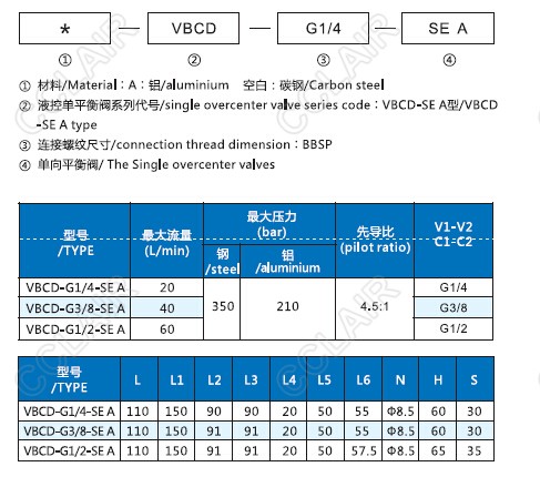 VBCD-G1/4-SEA,VBCD-G3/8-SEA,VBCD-G1/2-SEA,VBCD-SEA,單向平衡閥