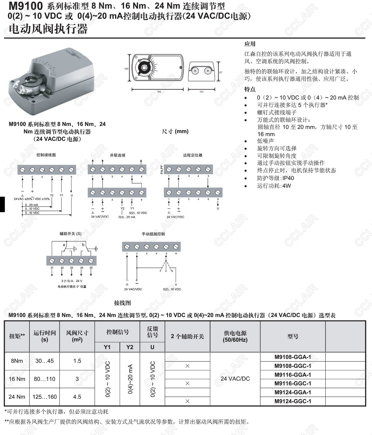 M9108-GGA-1,M9108-GGC-1,M9116-GGA-1,M9116-GGC-1,M9100,標準型8/16/24Nm連續(xù)調(diào)節(jié)控制電動執(zhí)行器