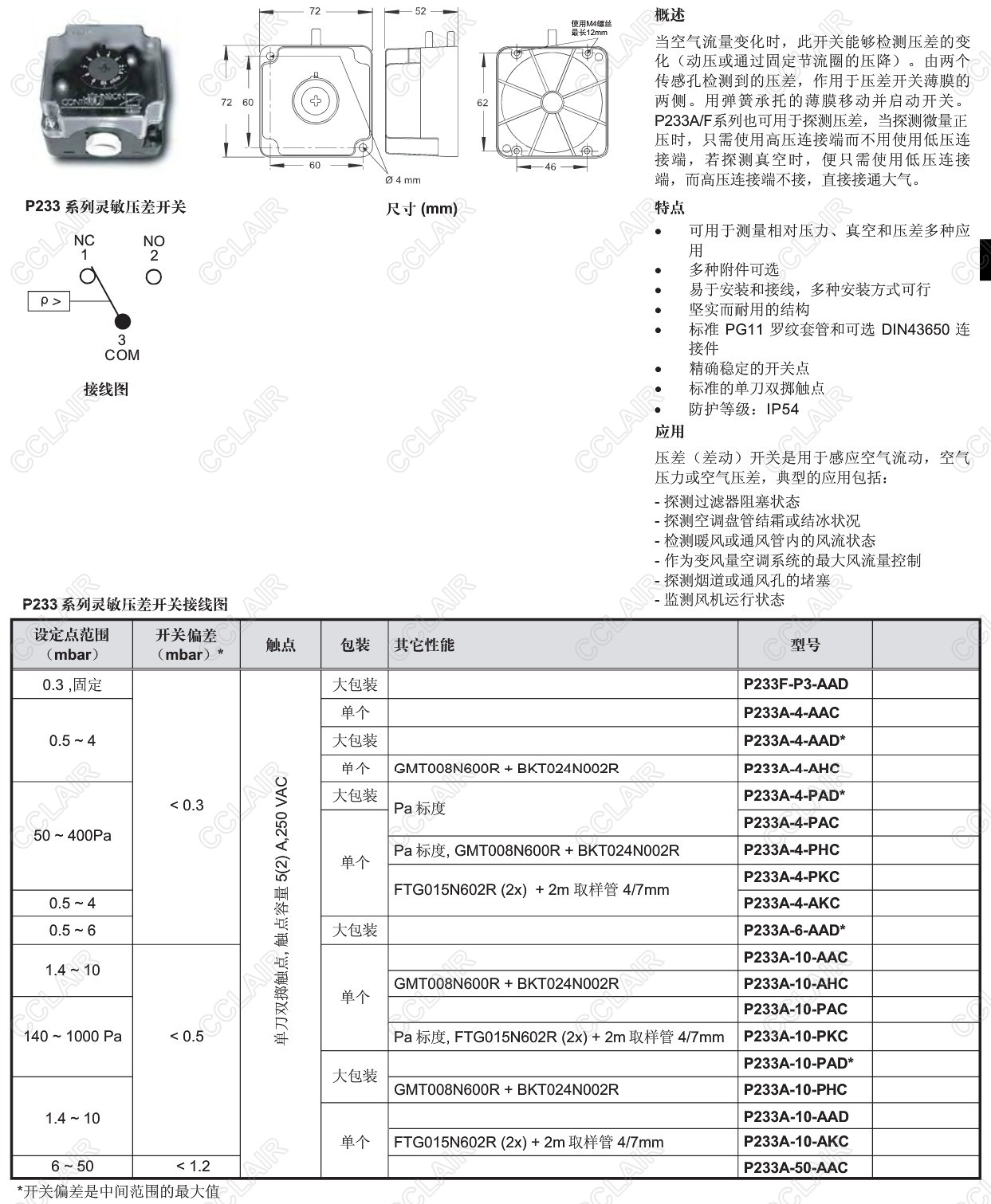 P233F-P3-AAD,P233A-4-AAC,P233A-4-AAD,P233A-4-AHC,P233A-4-PAD,P233,靈敏壓差開(kāi)關(guān)