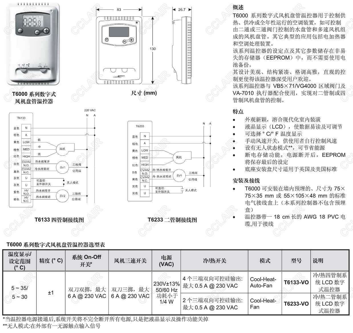 T6133-VO,T6233-VO,T6000,數(shù)字式風(fēng)機(jī)盤管溫控器