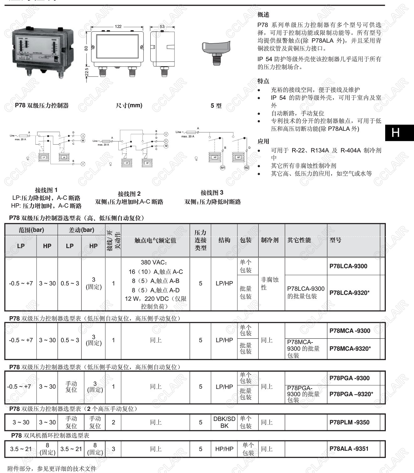 P78LCA-9300,P78LCA-9320,P78MCA-9300,P78MCA-9320,P78PGA-9300,P78,雙級壓力控制器