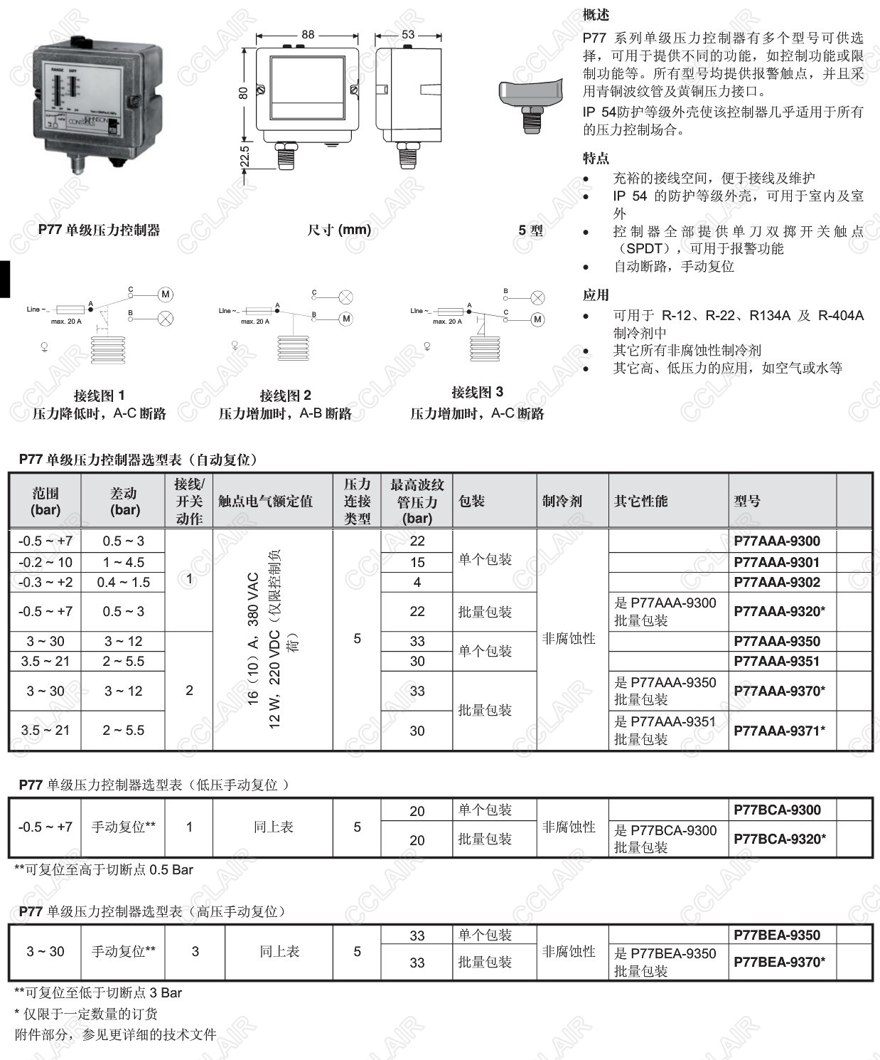 P77AAA-9300,P77AAA-9301,P77AAA-9302,P77AAA-9320,P77AAA-9350,P77,單級壓力控制器 |