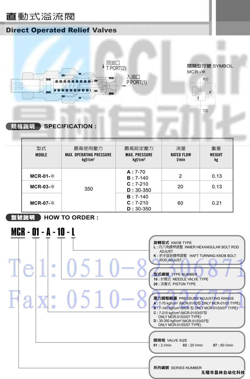 MCR-01-A-10-L,MCR-03-A-10-L,MCR-07-A-10-L,直動(dòng)式溢流閥,生產(chǎn)廠家,價(jià)格,