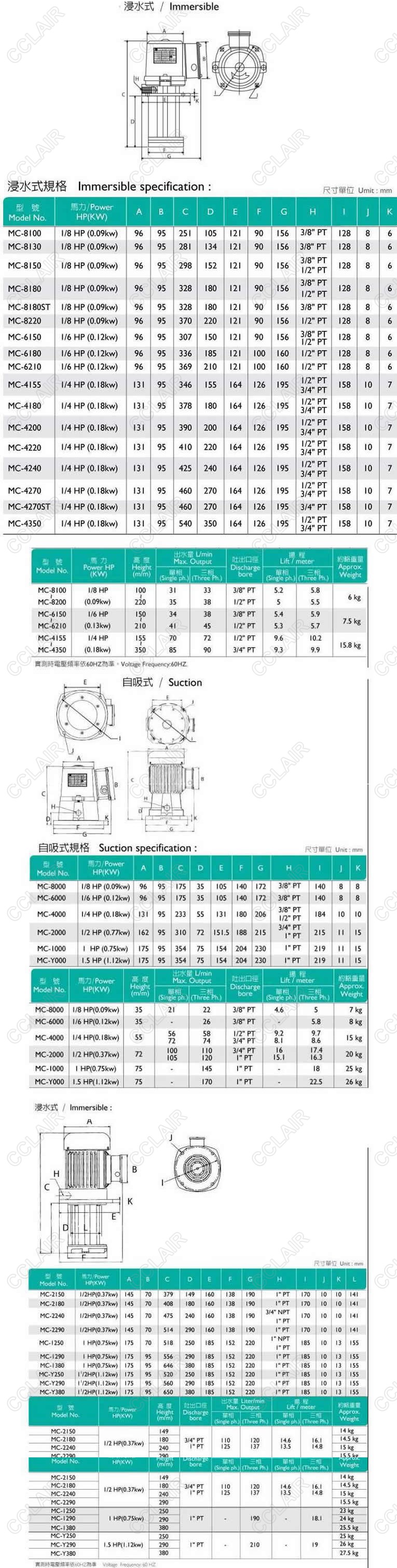 MC-8100,MC-8130,MC-8150,MC-8180,MC-8180ST,MC-8220,MC-6150,浸水式、自吸式冷卻泵浦FLAIR