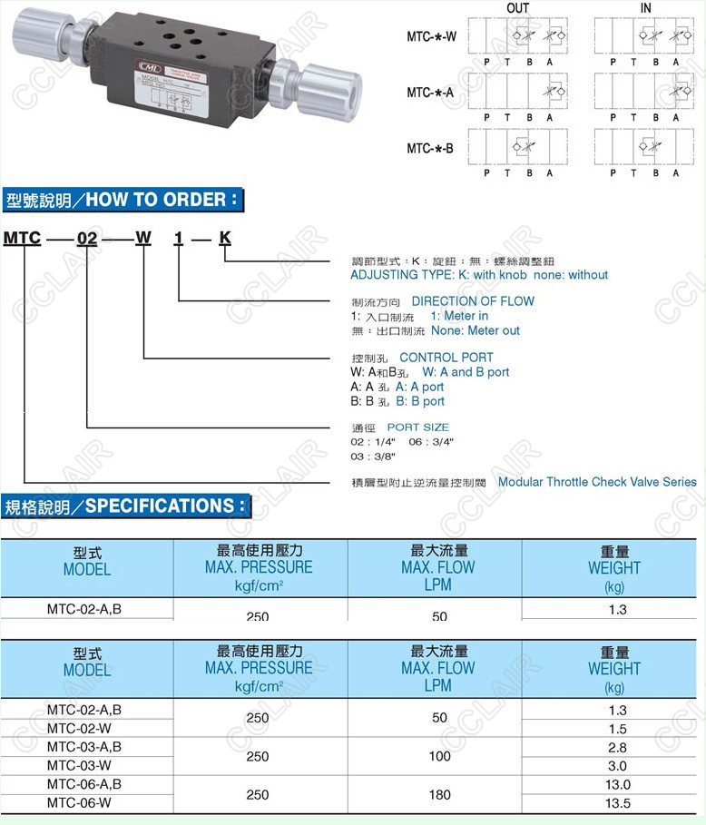 MTC-02-W-1-K,MTC-02-B-1,MTC-03-A-K,MTC-06-B,積層型附止逆流量控制閥CML