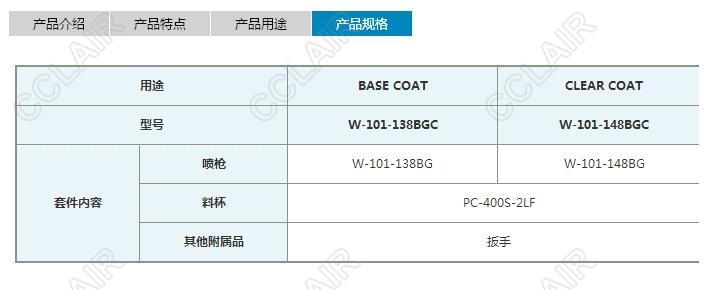 W-101-138BGC,W-101-148BGC,各工序專用噴槍