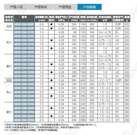 NEW-100-082P,NEW-100-131S,NEW-100-152G,NEW-200-251G,NEW-100/200小型、大型噴槍