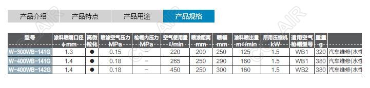 W-300WB-141G,W-400WB-141G,W-400WB-142G,水性涂料專用噴槍