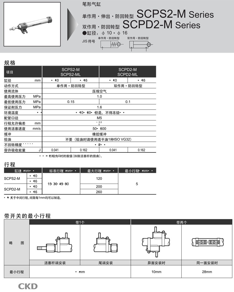 SCPD2-M-00,SCPD2-M-LS,SCPD2-M-FA,SCPD2-M-CB,SCPD2-ML-00,SCPD2-ML-LS,SCPD2-ML-FA,SCPD2-ML-CB,CKD筆型氣缸