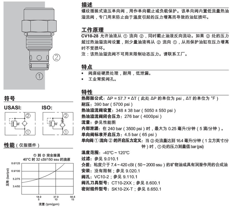CV10-28-0-N-65/45,CV10-28-2B-N-65/45,CV10-28-3B-V-65/45,熱溢流單向閥