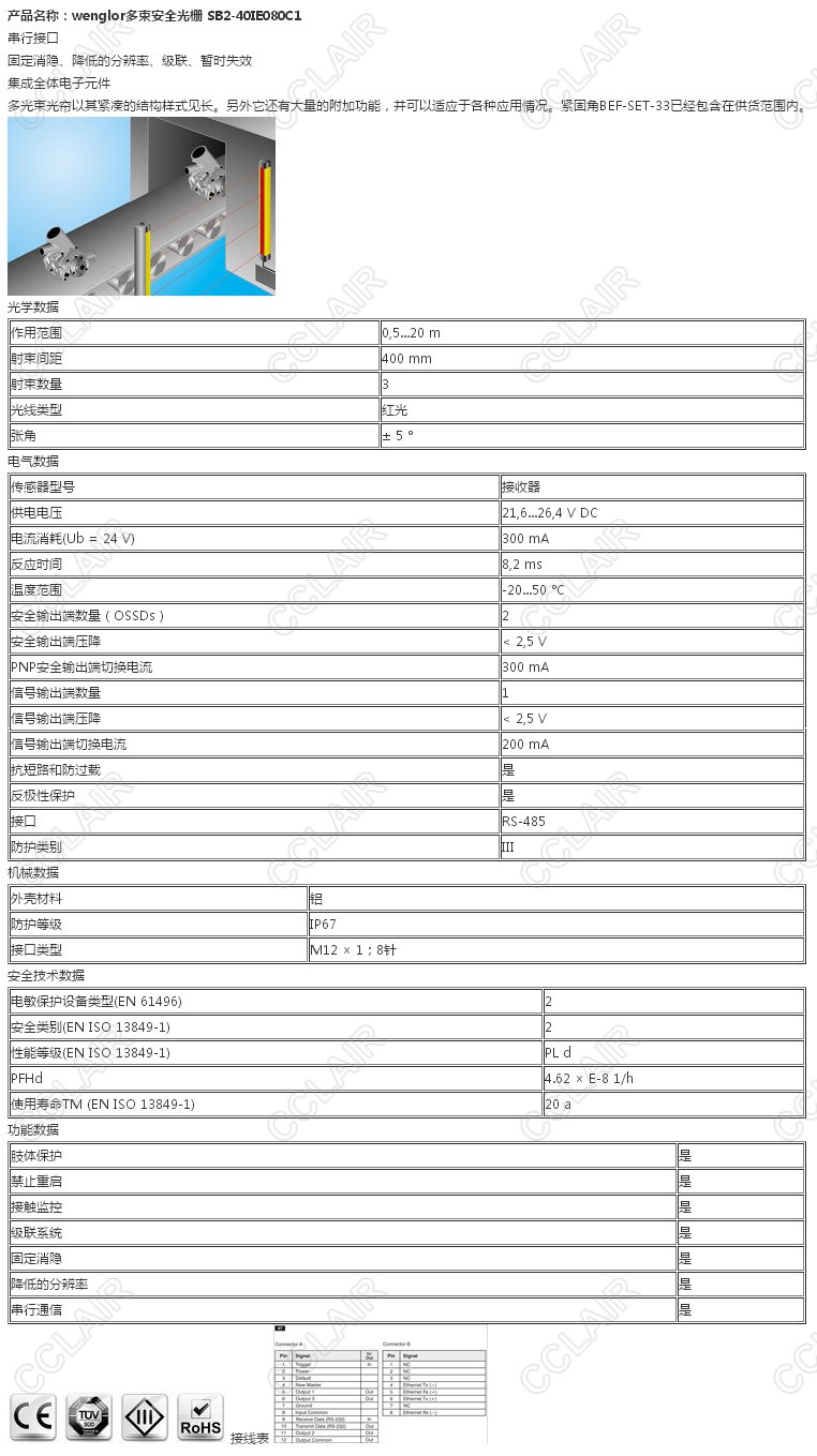 SB2-40IE080C1,wenglor多束安全光柵