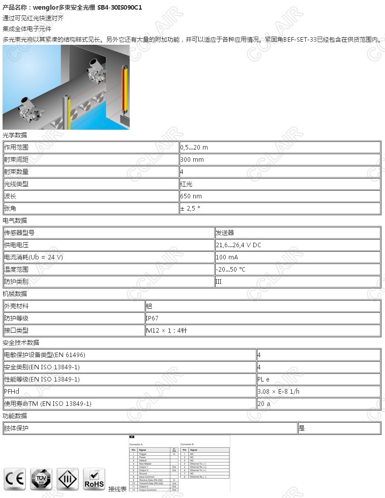 SB4-30IS090C1,wenglor多束安全光柵