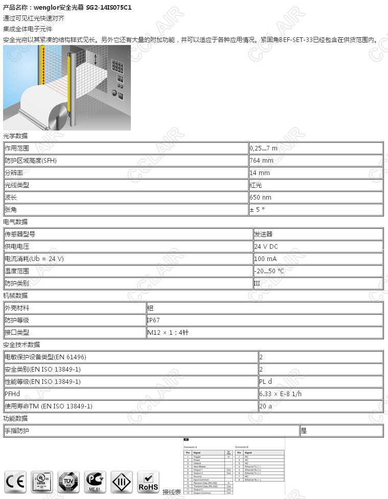 SG2-14IS075C1,wenglor安全光幕