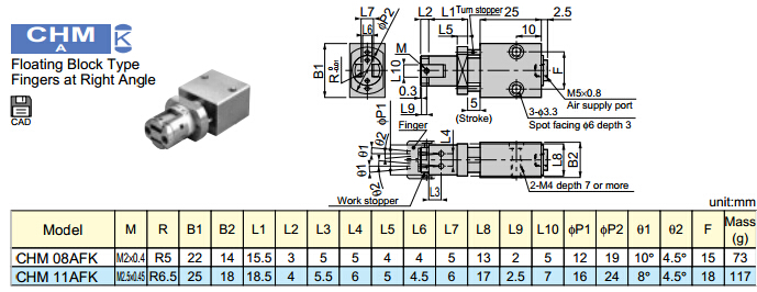 CHM08AFK,CHM11AFK,PISCO截止夾持器