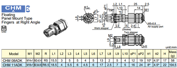 CHM08ADK,CHM11ADK,PISCO截止夾持器