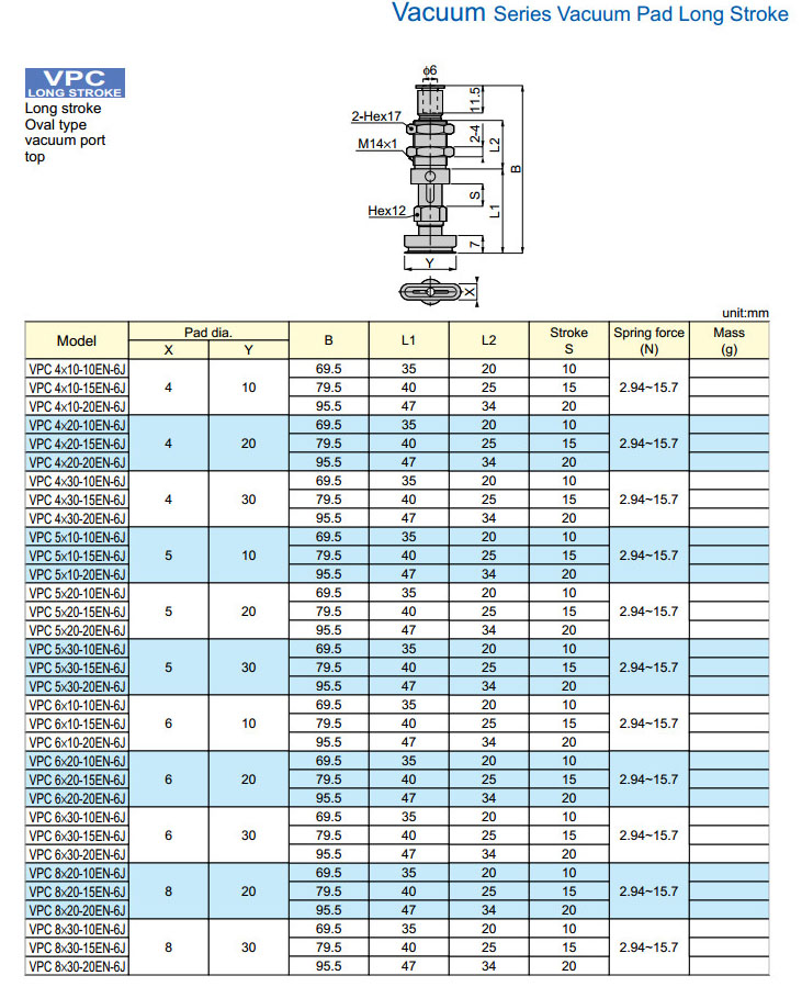 VPC4×10-10EN-6J,VPC5×10-10EN-6J,VPC6×10-10EN-6J,VPC8×20-10EN-6J,PISCO真空吸盤 |