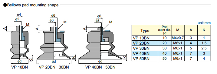 VP10BN,VP20BN,VP30BN,VP40BN,VP50BN,PISCO真空吸盤