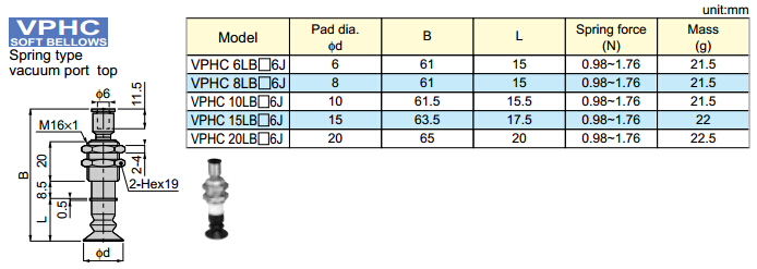VPHC6LBN6J,VPHC8LBN6J,VPHC10LBN6J,VPHC15LBN6J,VPHC20LBN6J,VPHC6LBS6J,VPHC8LBS6J,PISCO真空吸盤