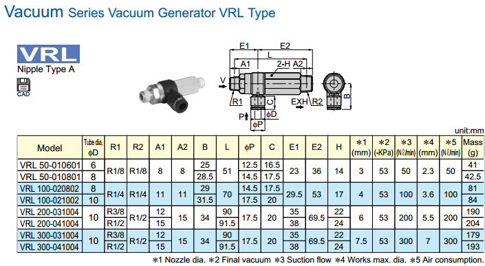 VRL50-010601,VRL100-020802,VRL200-031004,VRL300-031004,VRL50-010801,VRL100-021002,PISCO真空發(fā)生器 |