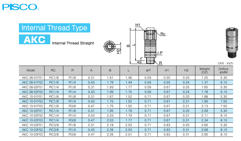 AKC08-01F01,AKC08-02F01,AKC10-01F01,AKC10-02F01,AKC10-03F01,AKC08-01F02,AKC10-02F03,PISCO耐熱管接頭
