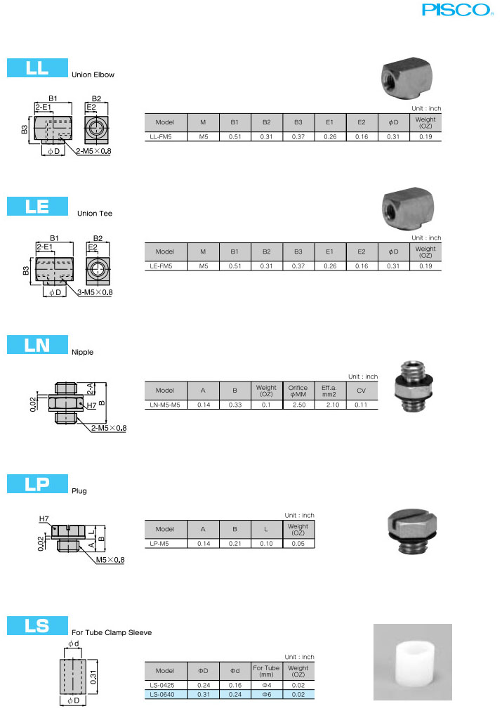 LL-FM5,LE-FM5,LN-M5-M5,LP-M5,LS-0425,LS-0640,PISCO特殊接頭