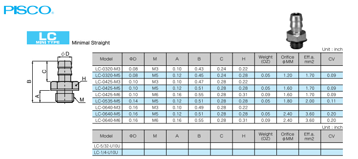 LC-0320-M3,LC-0425-M6,LC-5/32-U10U,LC-1/4-U10U,LC-0640-M6,LC-0535-M5,PISCO特殊接頭 |
