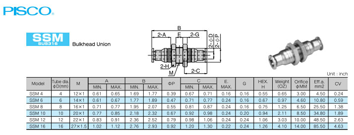 SSM4,SSM6,SSM8,SSM10,SSM12,SSM16,PISCO快速接