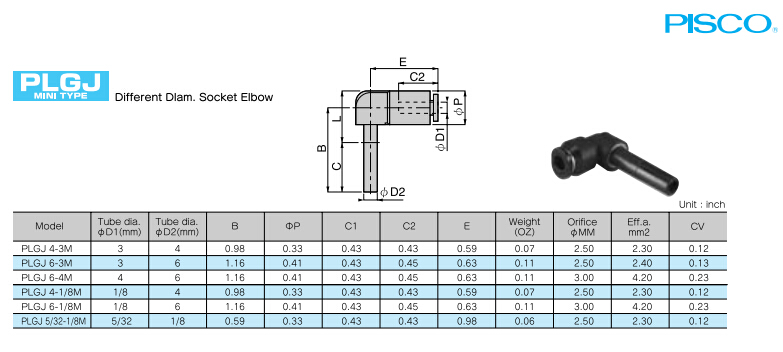 PLGJ4-3M,PLGJ6-3M,PLGJ6-4M,PLGJ4-1/8M,PLGJ6-1/8M,PLGJ5/32-1/8M,PISCO快速接頭
